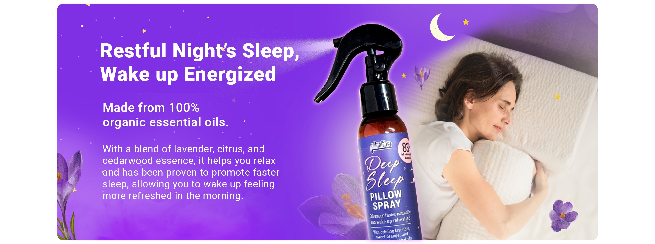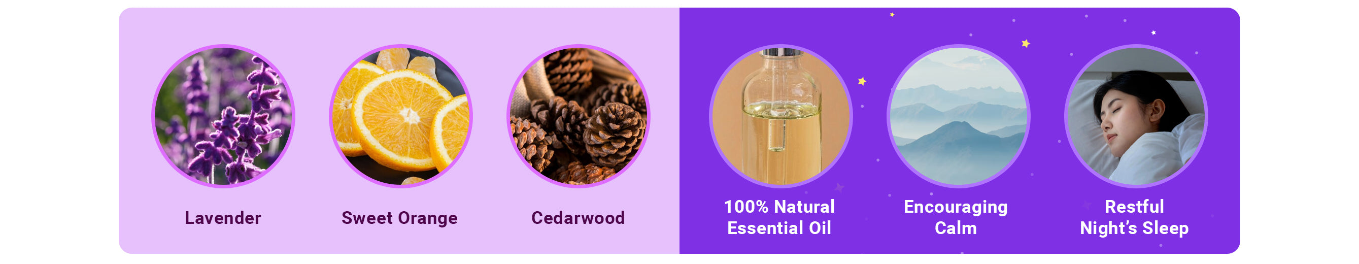 Made from 100% organic essential oils. A blend of lavender, citrus, and cedarwood essence helps you relax, proven to promote faster sleep and a more refreshing wake-up in the morning.